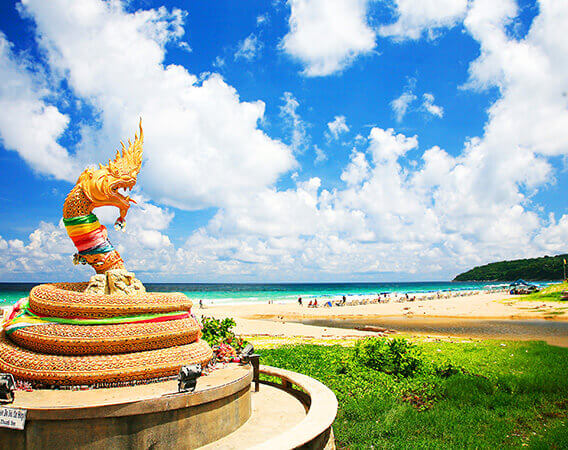 Wat Karon (Karon Temple) is located some 500m from the beach in Karon Centre. Founded in 1895, it went through major renovation and the addition of a three-storey building that hosts monk’s dormitories, prayer hall and a large kitchen in which food is prepared for the attendants at regular religious ceremonies held on the temple ground. The ordination hall is set in a superbly decorated edifice surrounded by two Naga statues (Thai mythological snake).