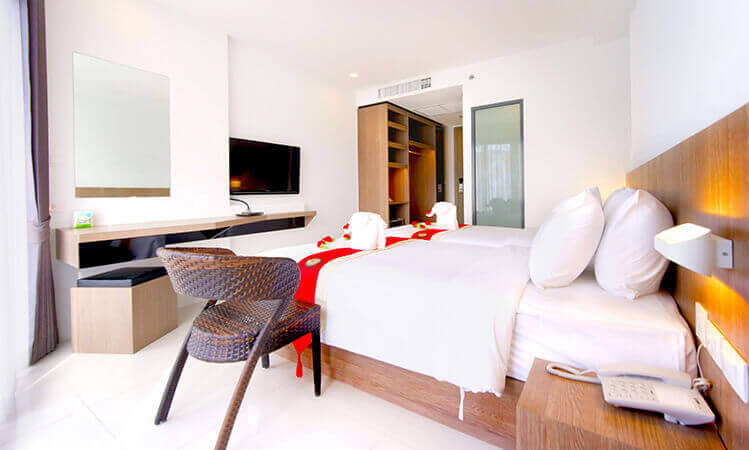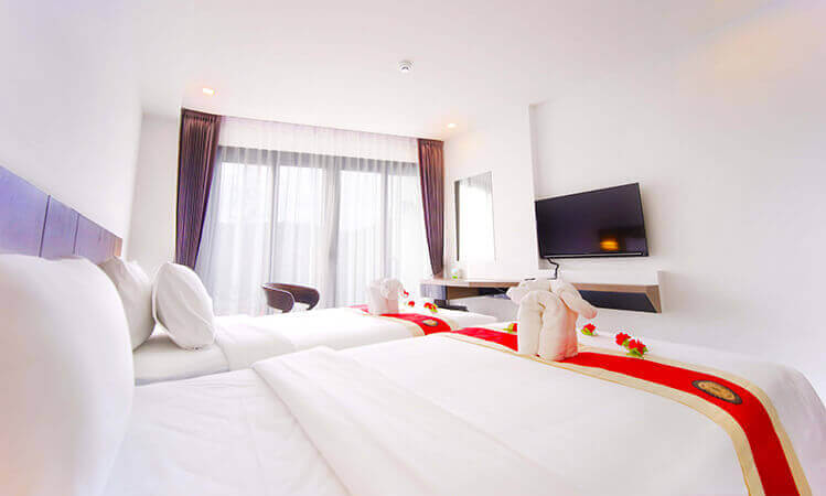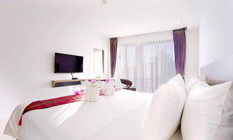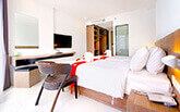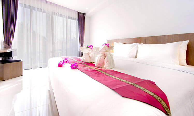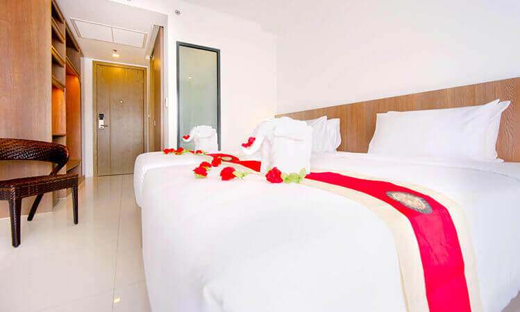 Our Deluxe Double Rooms offer a premium guest-room experience with generous proportions from 33 sqm. Relax in the king-sized bed, plan your day from the executive desk, or sink into a comfy bed and leave the everyday behind. Some the rooms have a magical view of the Karon Parke and Karon Beach.