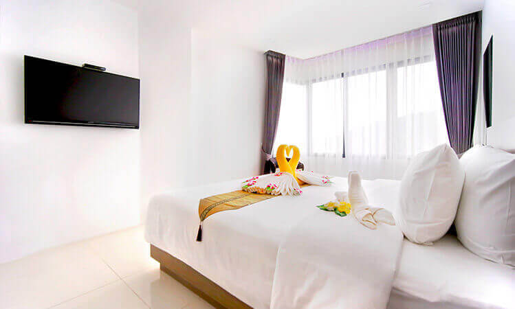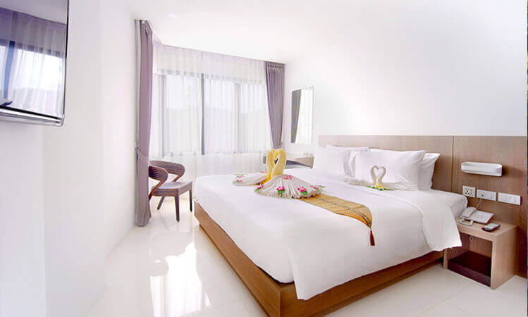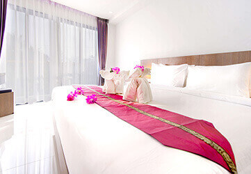 Escape the everyday in a Superior Room with perfectly proportioned living space from 32 sqm, featuring amenities and furnishings. Spend a lazy morning in the plush double bed, plan your day from the executive desk, or sink into a comfy double bed after a hectic day on the beach. Several of the rooms in this category have magnificent views of the Karon Park and Karon Beach.